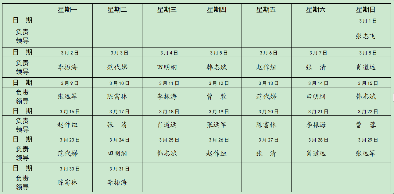 现将学校2026年3月份校领导值班带班安排公布如下。