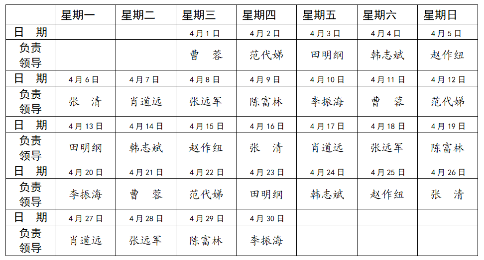 现将学校2026年4月份校领导值班带班安排公布如下。
